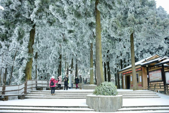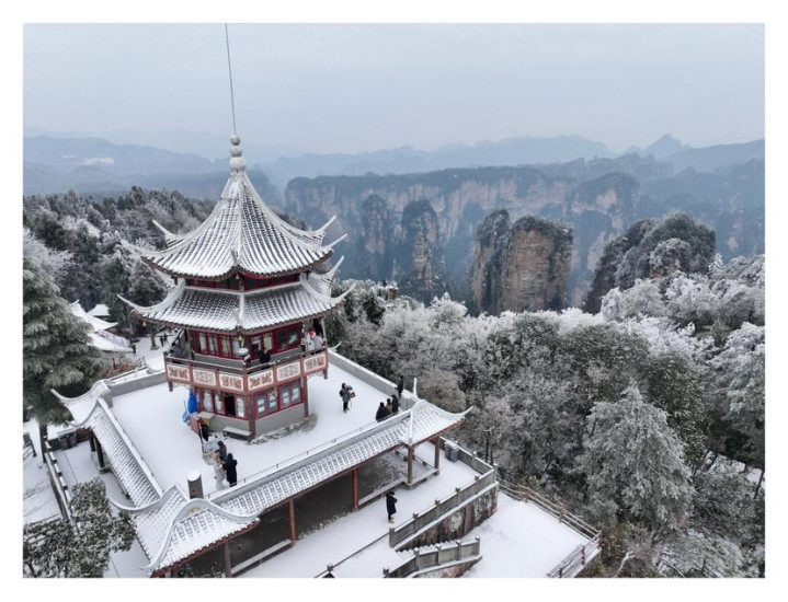 张家界国家森林公园黄石寨雪景雾凇奇观。易鹏飞摄